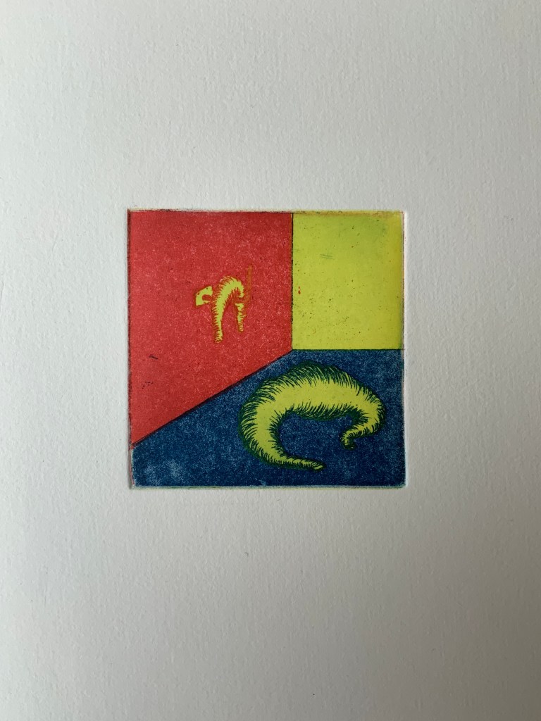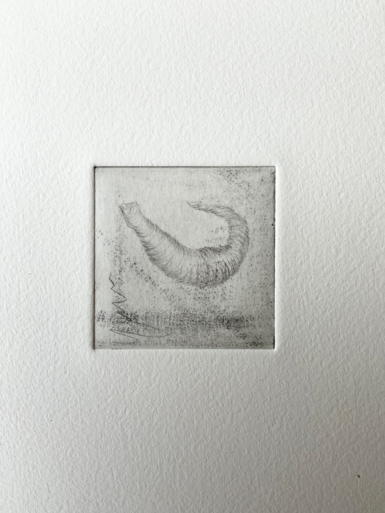 Wurmbewusstsein #3-#5, sowie matt. entstanden als Kollaborationen mit Eva Möseneder im Druckatelier.
